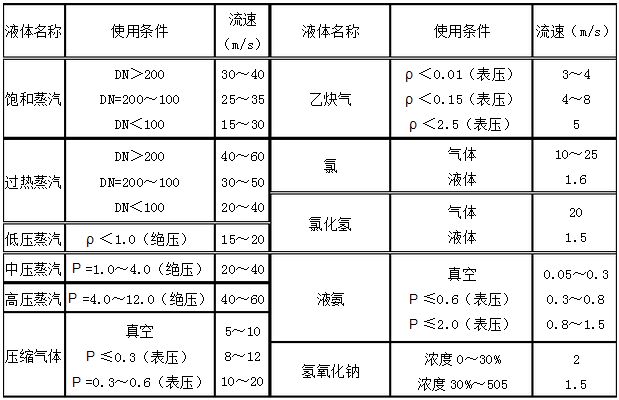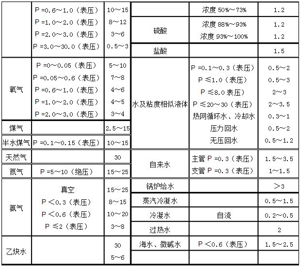 一般情況下,流量是已知的,流速可由經驗確定。各種介質常用流速見表2-2。通過流速和流量可以計算閥門的公稱通徑。 閥門通徑相同,其結構型式不同,流體的阻力也不一樣。在相同條件下,閥門的阻力系數越大,流體通過閥門的流速、流量下降越多;閥門阻力系數越小,流體通過閥門的流速、流量下降越少。常見介質的流速見表2-2。