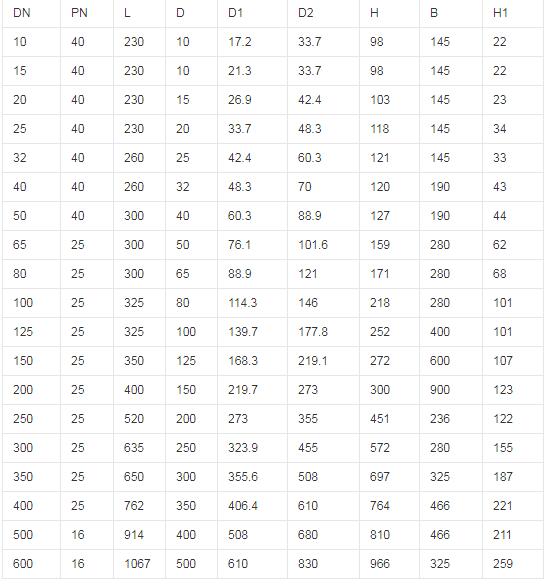 全焊接球閥尺寸表